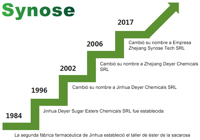 Empresa Zhejiang Synose Tech SRL es la más temprana de la empresa nacional de la investigación y desarrollo de los productos de la serie S del éster de sacarosa En 1983, estableció el proyecto del éster de sacarosa, ha realizado las pruebas en 1984, después de más de 30 años de mejora técnica y de avance, la empresa se ha convertido en el fabricante con la producción de escala más grande, las variedades más completas del éster de sacarosa.