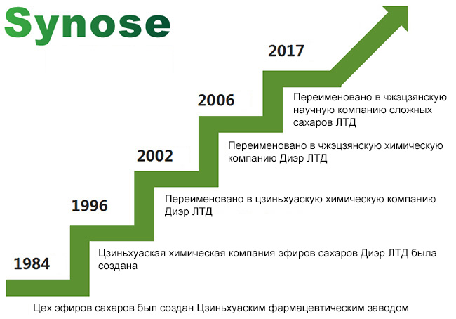 Чжэцзянская научная компания сложных сахаров ЛТД является компанией, которая занималась исследованием и развитием серии S эфиры сахаров ранее всего в Китае. В 1983 году был определен объект эфиры сахаров, в 1984 году среднее опробование было выполнено, через более 30 лет улучшения и превышения технологии, компания уже стала крупнейшим завод-изготовителем эфиров сахаров с широким ассортиментом продуктов в Китае.