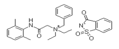 化學(xué)名:芐基二乙基[(2,6-二甲苯基氨基甲?;?甲基]銨糖精;鄰-磺酰苯甲酰亞胺[2-[(2,6-二甲基苯基)氨基]-2-氧代乙基]-N,N-二乙基芐基銨;糖精芐銨酰胺,地那銨糖精。