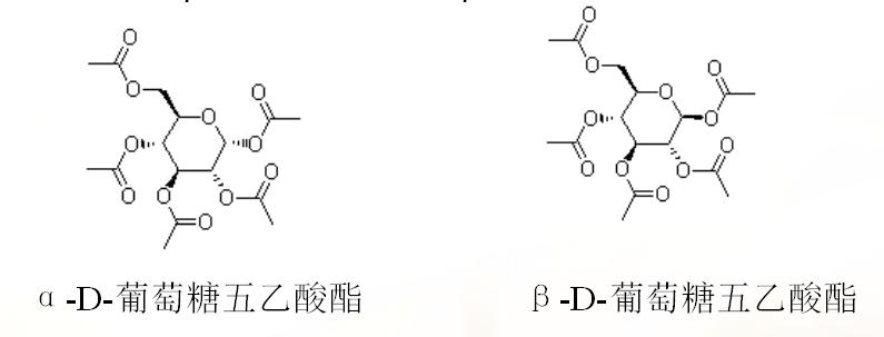性 狀:α-D-葡萄糖五乙酸酯, β-D-葡萄糖五乙酸酯和α.β-D-葡萄糖五乙酸酯均為白色結晶性粉末, 不溶于水,易溶于乙醇、氯仿等有機溶劑。