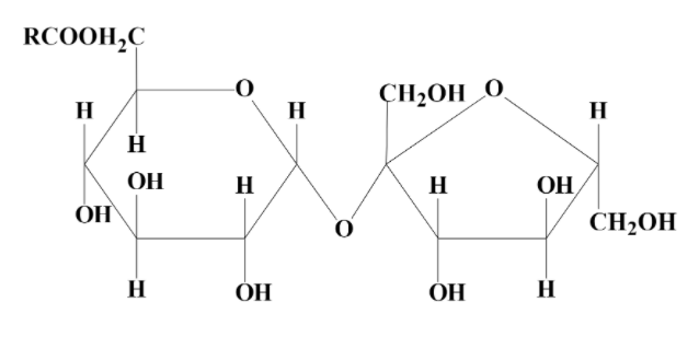 The sucrose molecule contains eight hydroxyl groups and can combine with fatty acids to form sucrose esters from mono-fatty acids to octa-fatty acids. Its chemical structure is as follows: